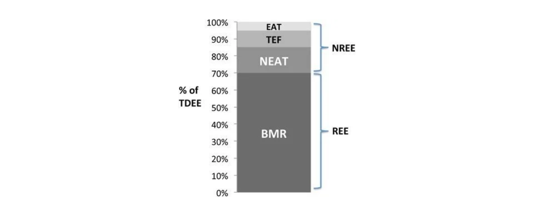 BMR = basal metabolic rate; NEAT = non-exercise activity thermogenesis; TEF = thermic effect of food; EAT = exercise activity thermogenesis; REE = resting energy expenditure; NREE = non-resting energy expenditure. Adapted from Maclean et al., 2011.